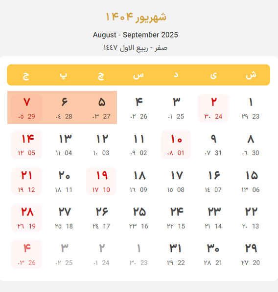 | 1 | - | - | - | - | - | - | - | در مسیر هستیم |